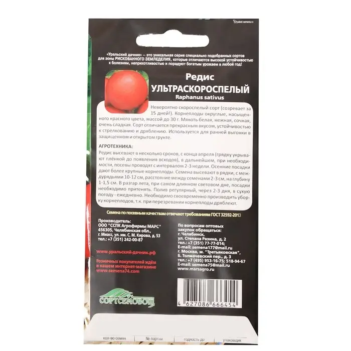 Семена Редис "16 дней",набор 5 шт