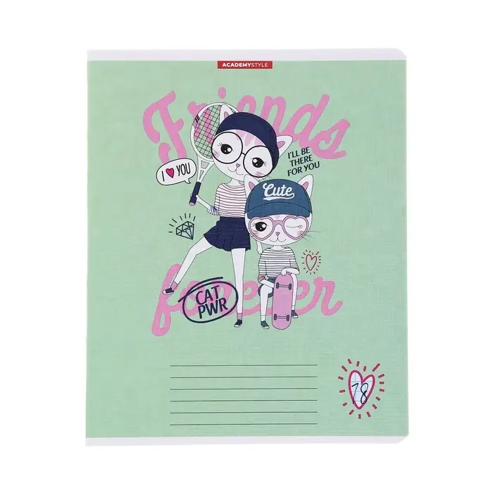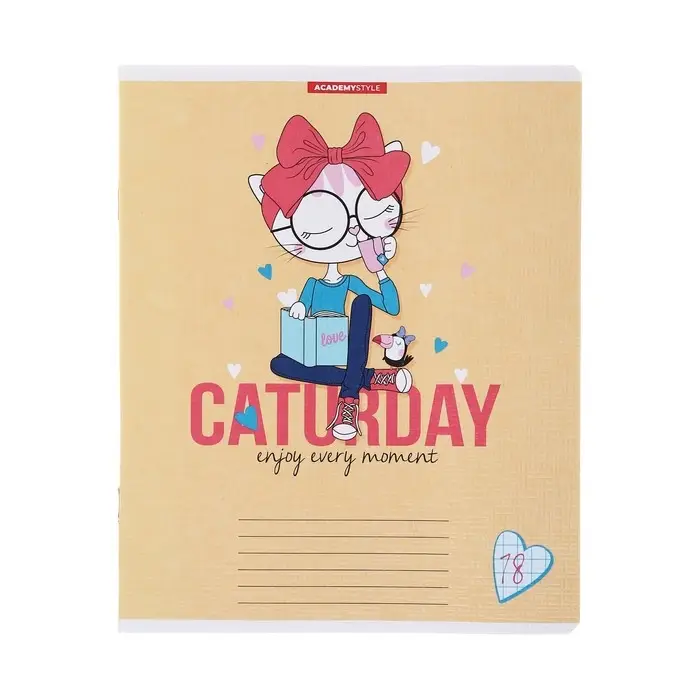 Тетрадь 18 листов в клетку "КотоДевочки", обложка бумага, текстура, блок офсет, МИКС