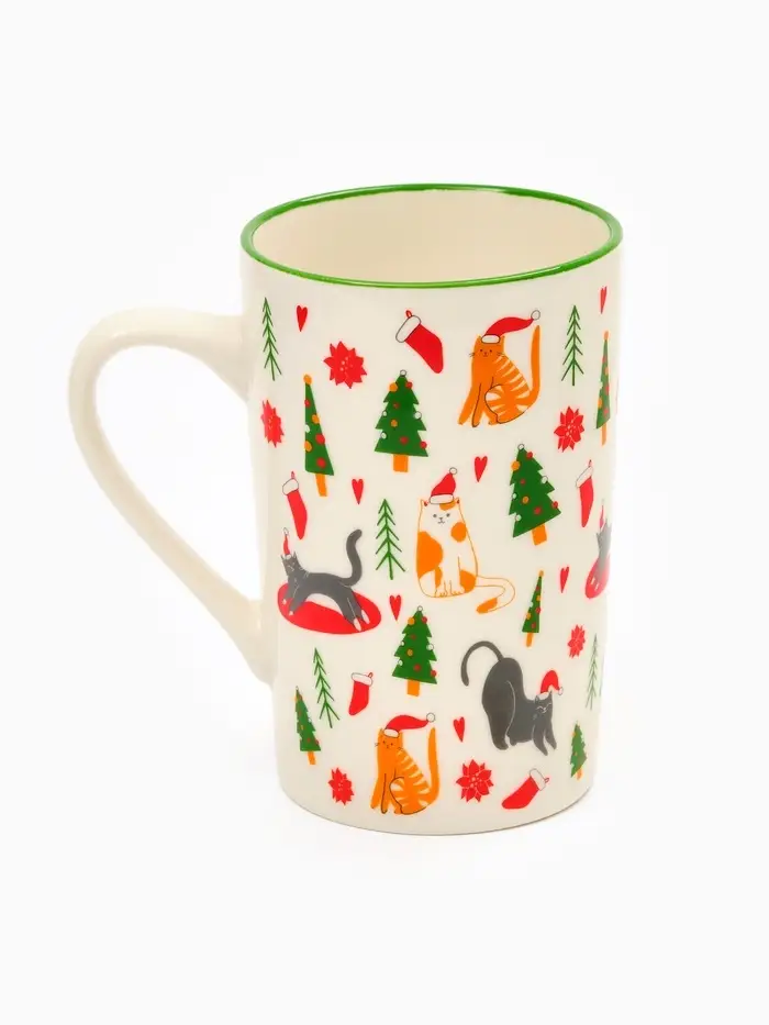 Кружка чайная керамическая «Новогодние коты», 385 мл, ручная работа