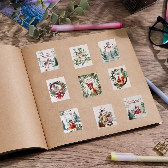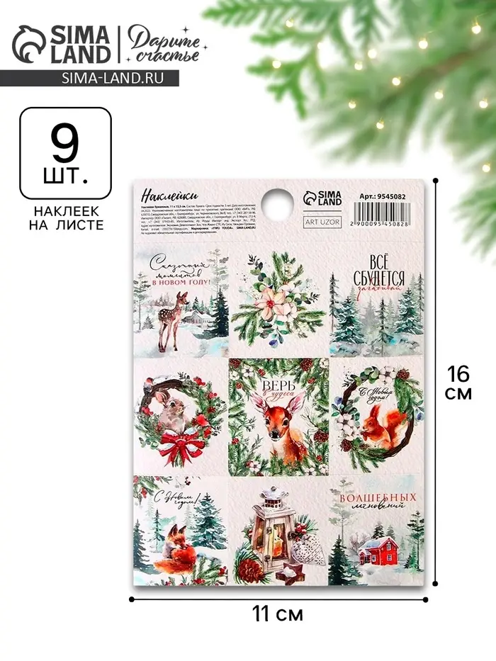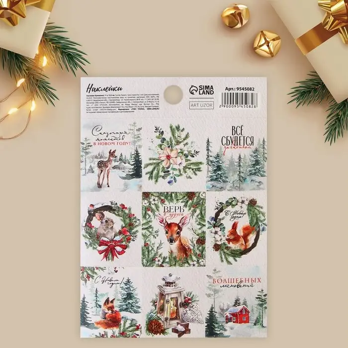 Наклейки новогодние бумажные «Волшебный лес», 11 х 16 см