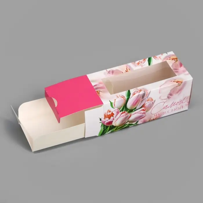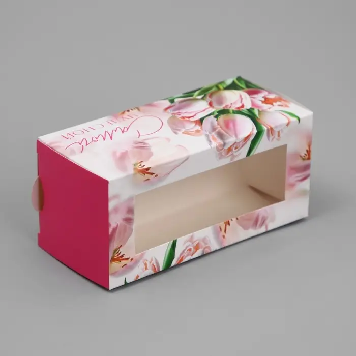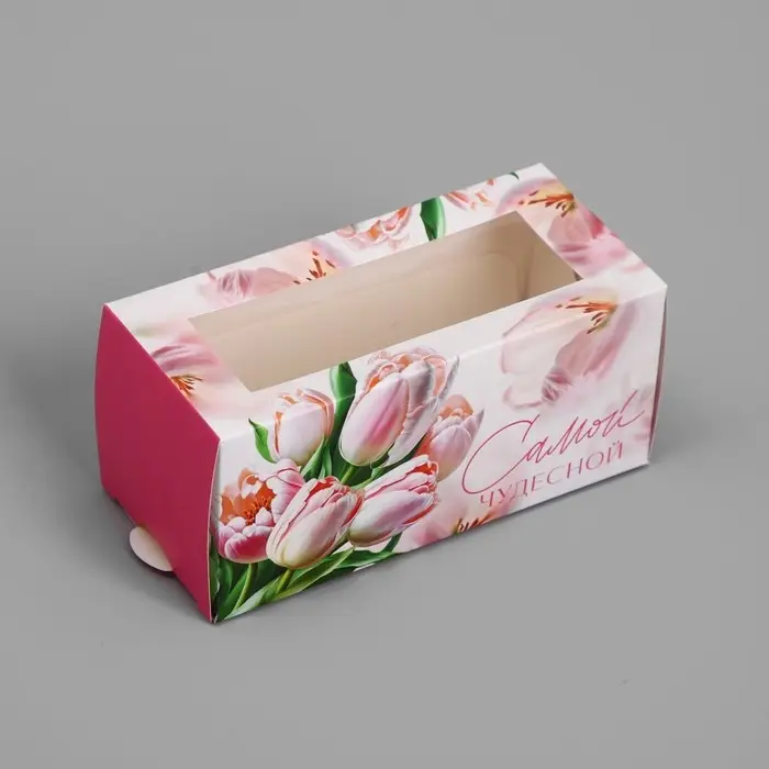 Коробка для макарун, кондитерская упаковка «Самой чудесной тюльпаны», 12 х 5.5 х 5.5 см