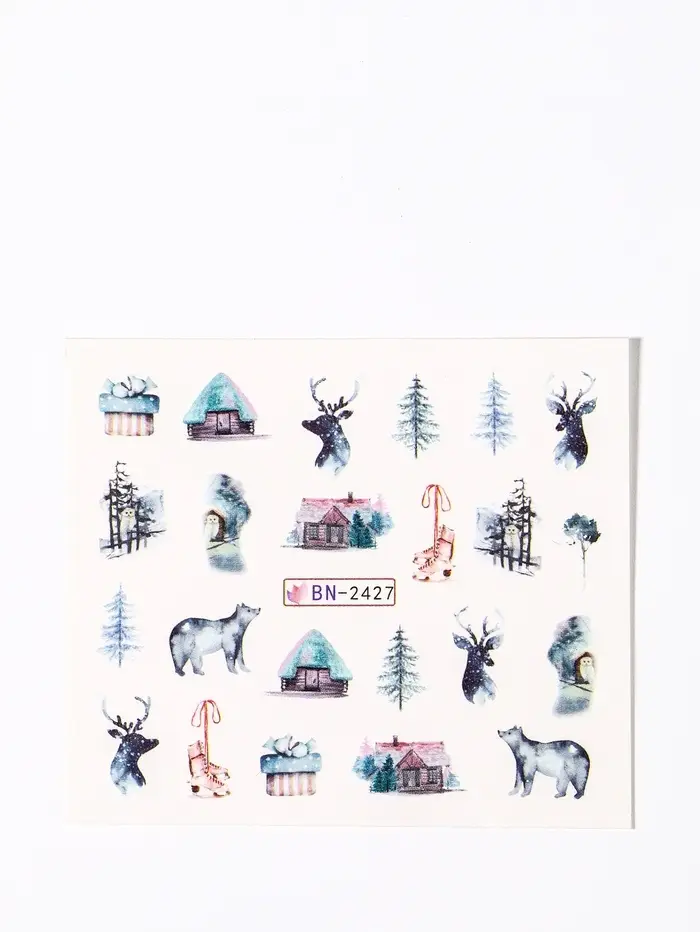 Новый год! Наклейки для ногтей «Зимний лес», фольгированные, цвет золотой/чёрный/белый