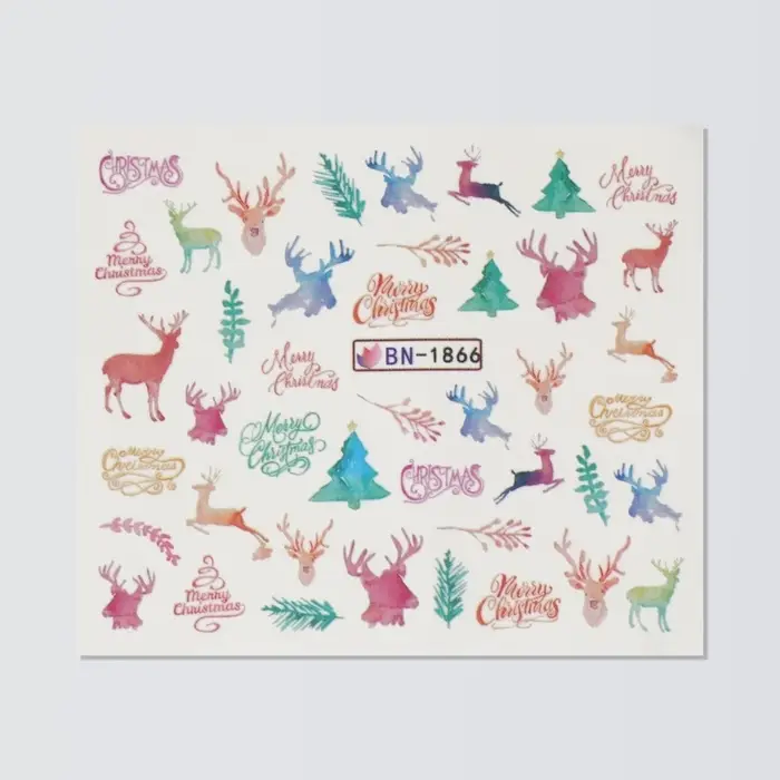 Слайдеры для ногтей «Олени», разноцветные