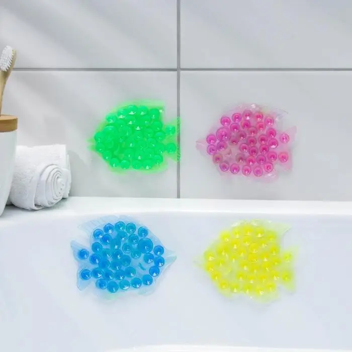 Коврики для ванной — аксессуары, незаменимые при купании ребёнка. Идеальным вариантом будет набор цветных изделий из высококачественной резины с двусторонним противоскользящим эффектом. На изнаночной и наружной стороне есть присоски, благодаря которым вы защитите своего неугомонного малыша от падений и ушибов во время мытья.