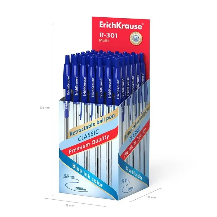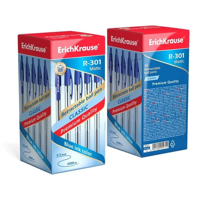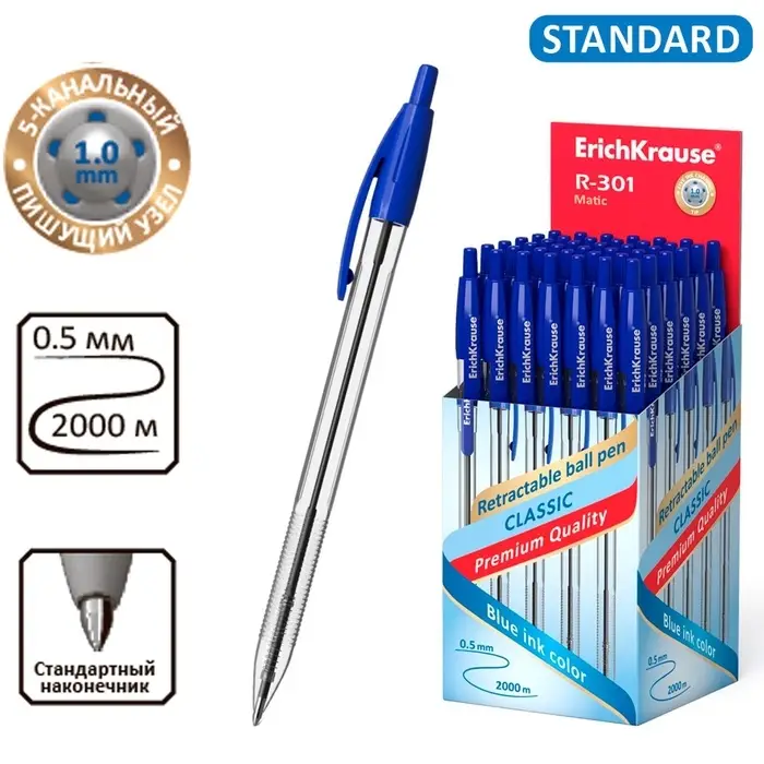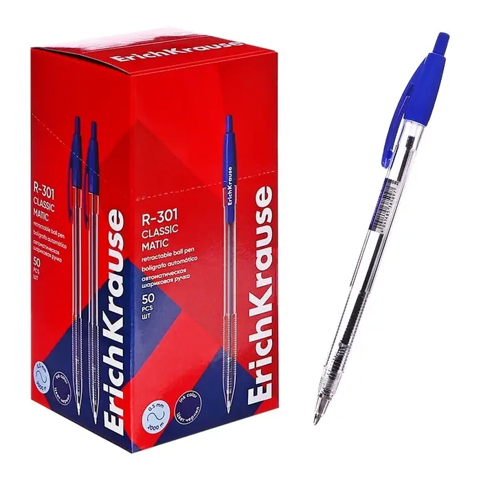 Ручка шариковая автоматическая ErichKrause R-301 MATIC, узел 1.0 мм, цвет чернил синий, длина непрерывной линии письма 2000 метров