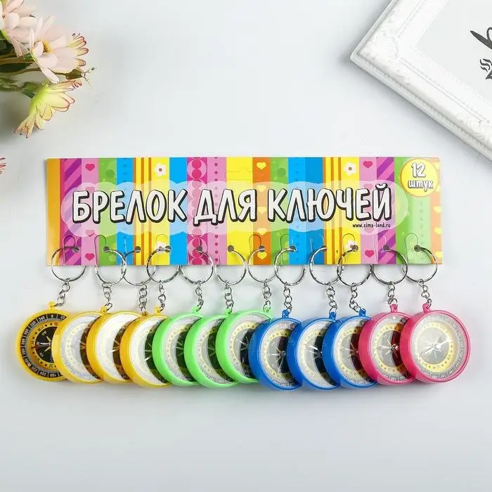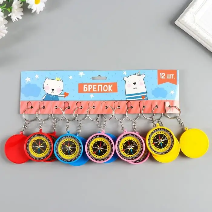 Брелок для ключей на кольце «Круглый», с компасом, пластик, 4.5×4.5×1 см, МИКС