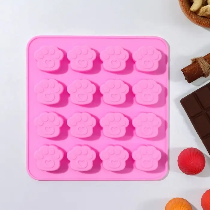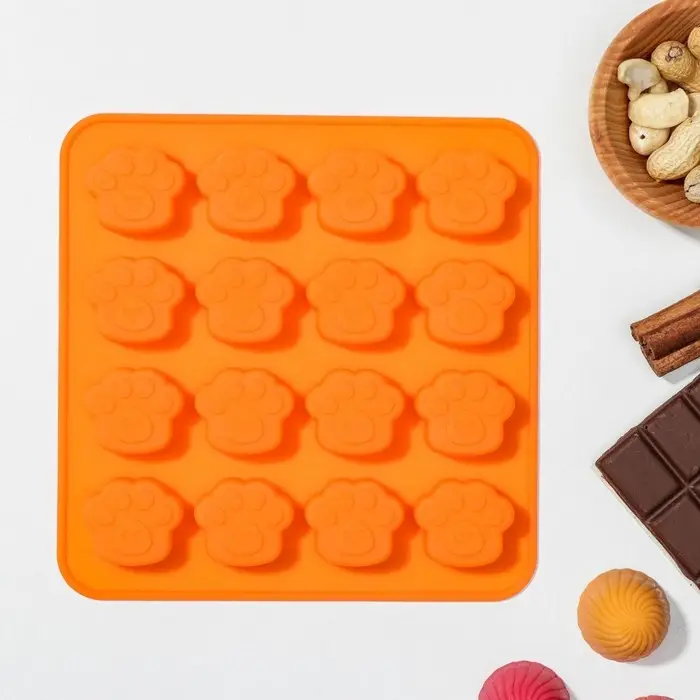 Форма для конфет и шоколада Доляна «Лапки», силикон, 16×15,5 см, 16 ячеек (3×2,7×0,5 см), цвет МИКС