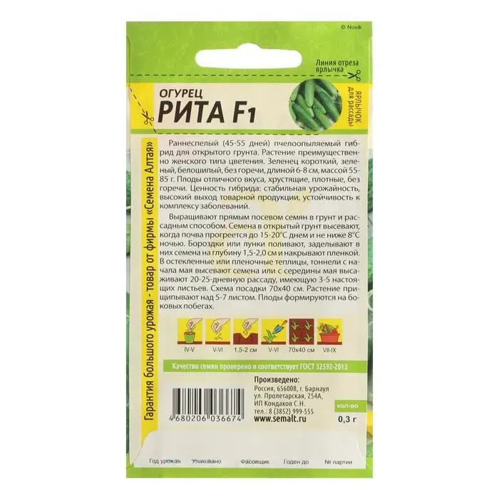Семена Огурец "Рита", F1, Сем. Алт, ц/п, 0,3 г