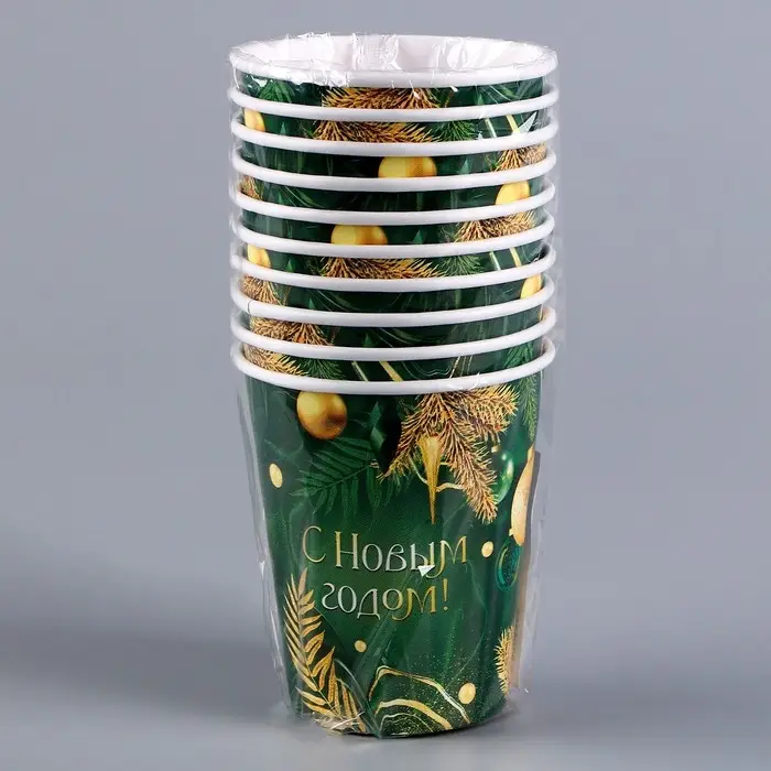 Стакан украшен ярким и красочным изображением новогодней тематики, которое создаёт ощущение праздника и радости. Идеально подходят для использования на детских праздниках, корпоративных мероприятиях, семейных торжествах и на многих других событиях. Они станут прекрасным выбором для тех, кто ценит качество, экологичность и стиль.