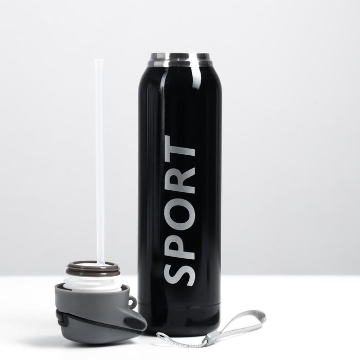 Термос, 500 мл, Спорт, 5.5 х 23 см, с трубочкой, черный
