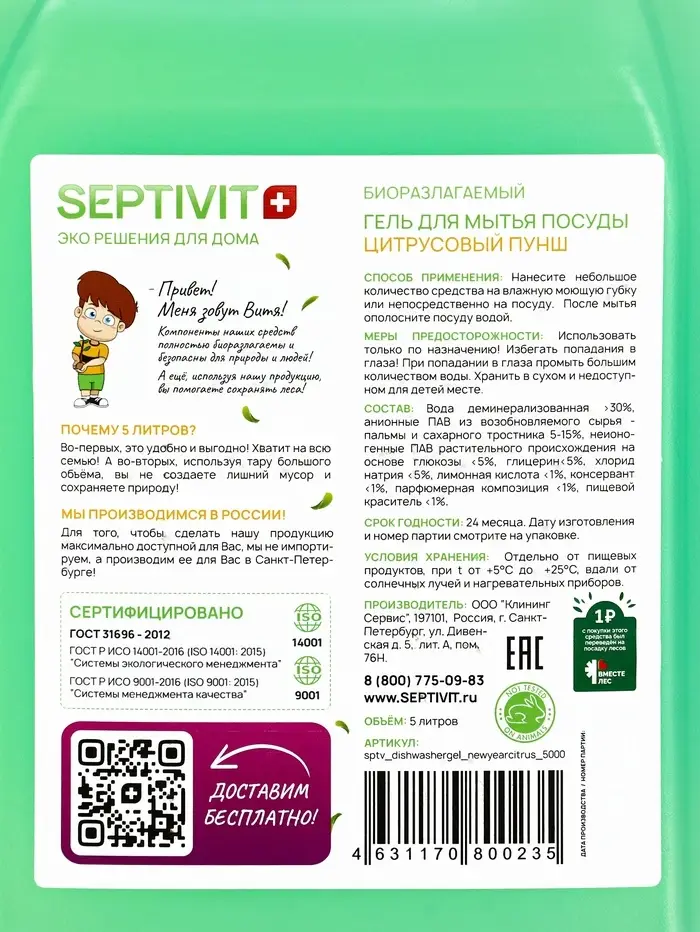 Гель для посуды SEPTIVIT "Цитрусовый пунш", 5л