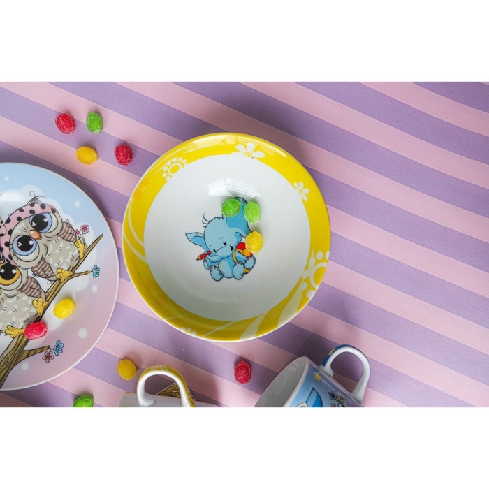 Набор детской посуды из керамики Доляна «Слонёнок», 3 предмета: кружка 230 мл, миска 400 мл, тарелка d=18 см