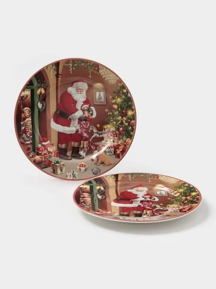 Набор тарелок новогодних «Ночь чудес», 2 шт., d=19 см, керамика, подарочная упаковка, разноцветный