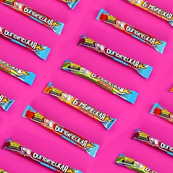 Жевательная резинка с кислой пудрой «Бомбическая» ассорти – подарит вам яркие вкусовые эмоции и настоящую взрывную радость. В каждой жевательной резинке скрывается кислая пудра, которая при контакте с языком создаёт удивительный эффект кислинки, усиливающий вкус и придающий жеванию уникальное ощущение.