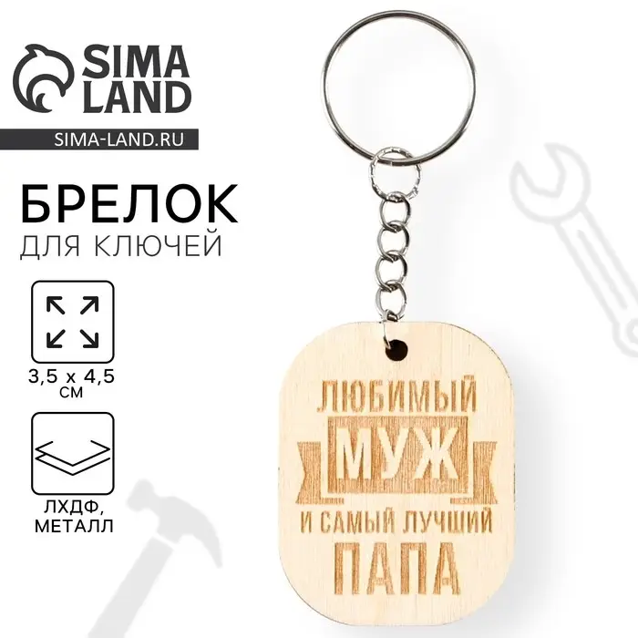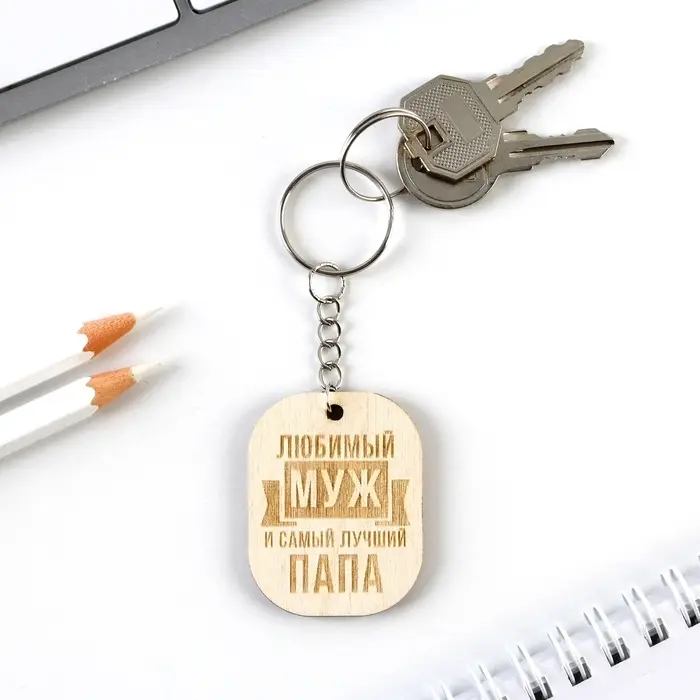 Брелок для ключей деревянный, жетон «Любимый муж», 3,5 х 4,5 см
