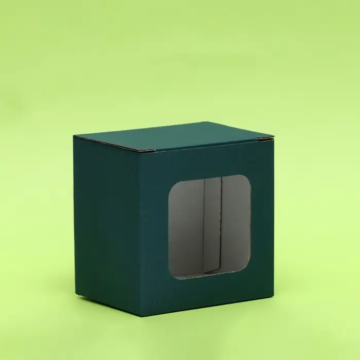 Коробка под кружку, с окном, изумрудная 12 х 9,5 х 12 см