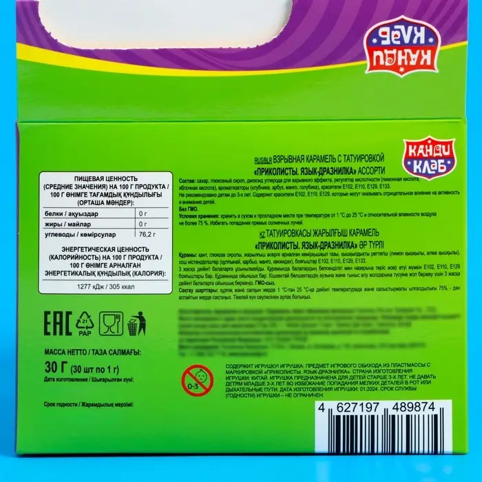 Карамель взрывная с татуировкой "Приколисты. Язык-дразнилка", ассорти, 1 г