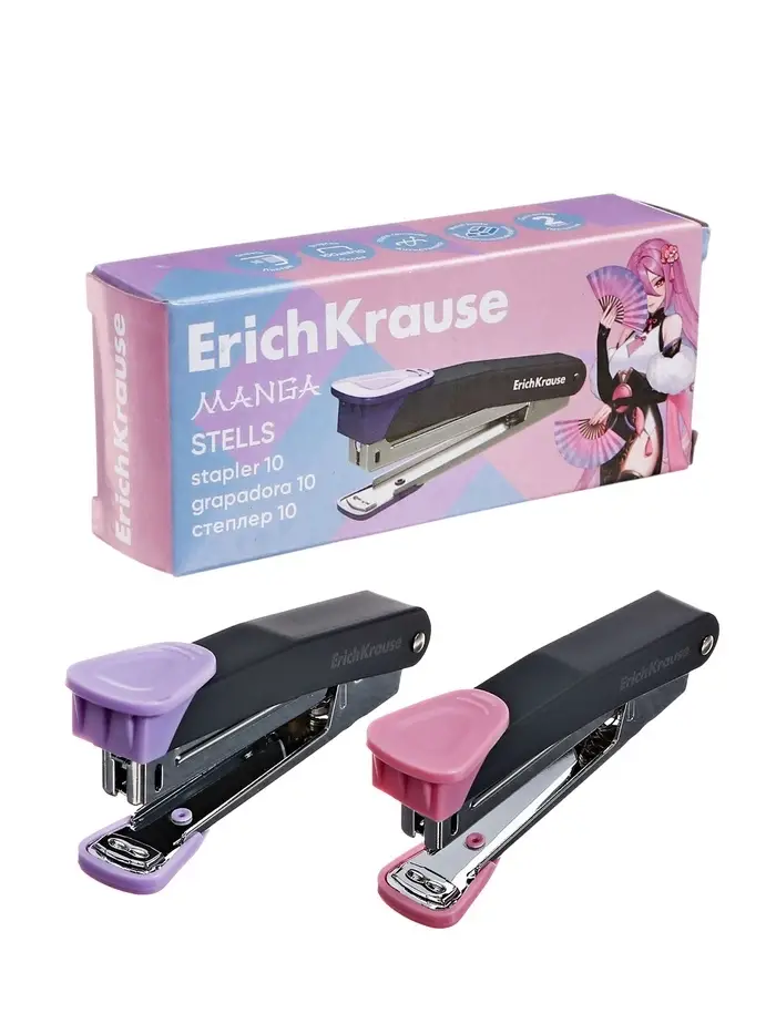 Степлер №10 ErichKrause Stells Manga, до 15 листов, МИКС