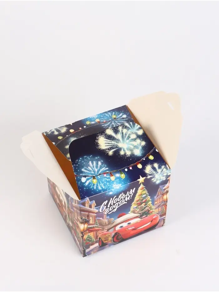 Коробка складная "С Новым годом!", Тачки , 12 х 12 х 12 см