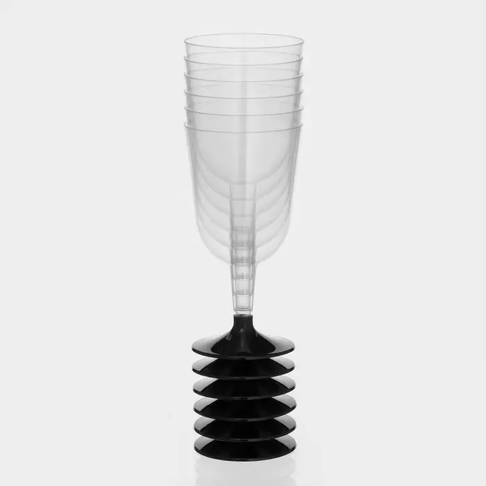 Бокал пластиковый одноразовый для шампанского «Флютэ», 150 мл, с металлизированными каемками, цвет прозрачный, 6 шт/уп