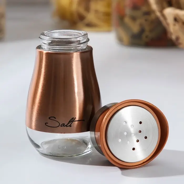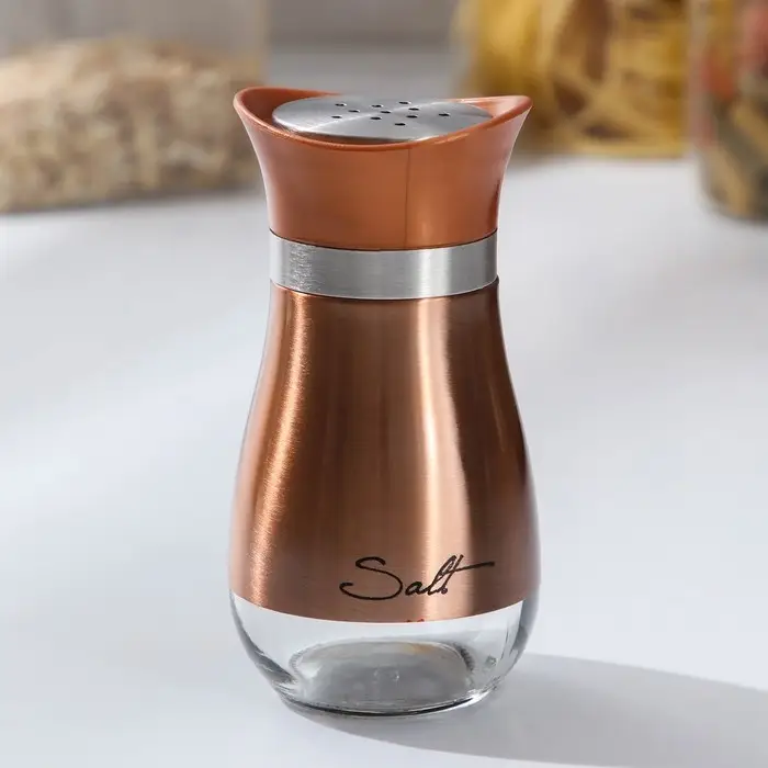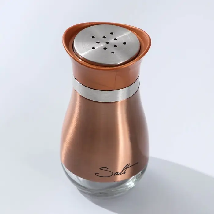 Солонка стеклянная «Сияние», 5,5×5×11 см, цвет бронзовый, надписи МИКС