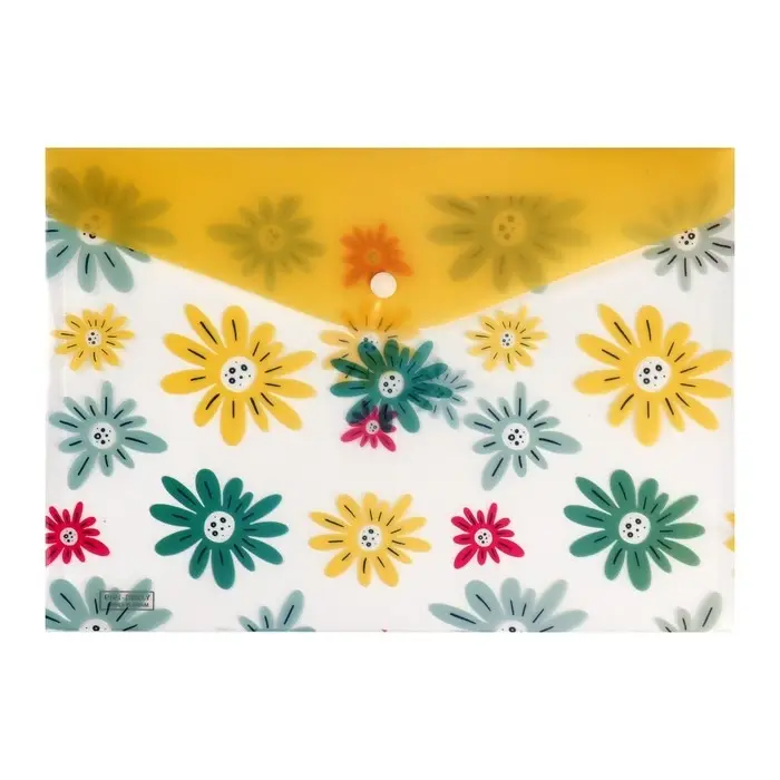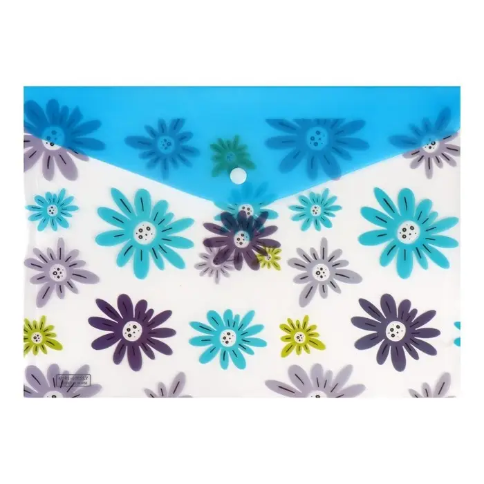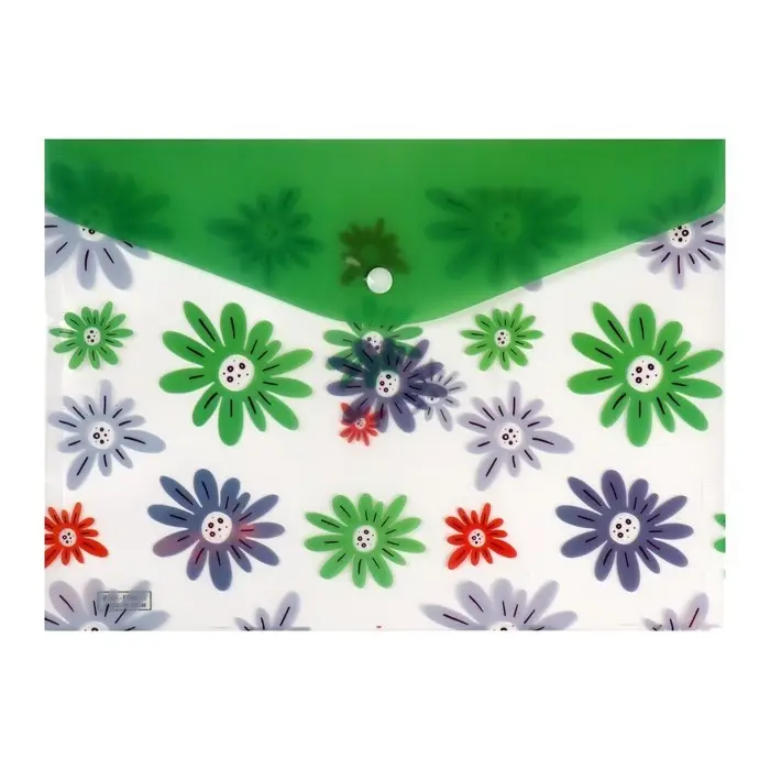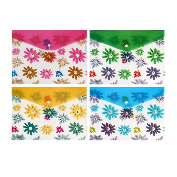Папка-конверт на кнопке, А4, 180 мкм, "Цветы", МИКС