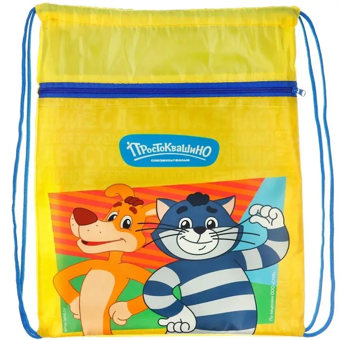 Мешок для обуви с карманом 420*350 мм, Союзмультфильм Простоквашино (мягкий полиэстер, плотность 210D)