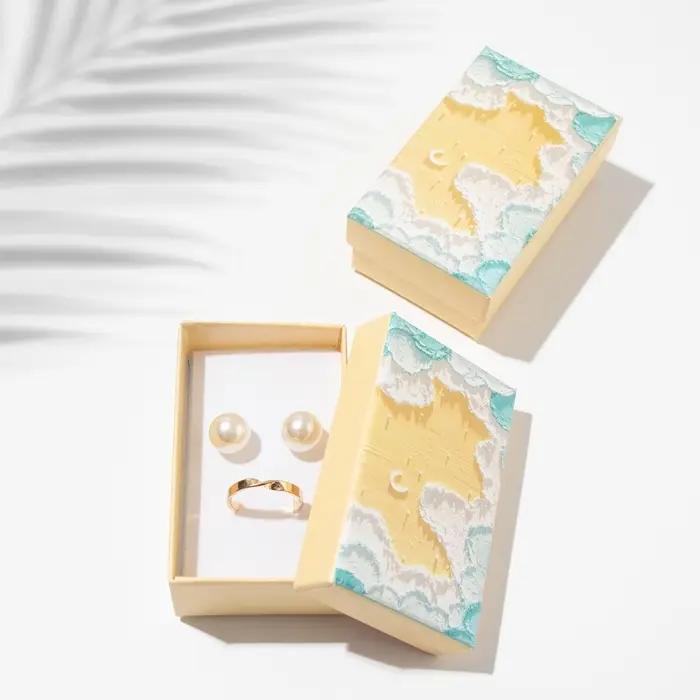 С нашими прекрасными коробочками любой подарок станет еще лучше и ярче. Футляр выполнен из прочного плотного картона. Оптимальный размер коробки 5*8см позволяет разместить разнообразные виды ювелирных изделий – от сережек до колье. Внутри каждой коробочки с крышкой есть белая бархатная подложка. С помощью специальных прорезей на подушечке можно аккуратно разместить и зафиксировать цепочки, гвоздики и перстни. А если убрать подложку, упаковка подойдет даже для часов с мягким плоским ремешком или на цепи.