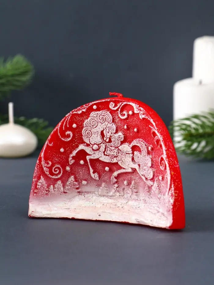 Свеча фигурная "Барельеф с лошадкой" 10,5х4,5х8 см, цв. красный