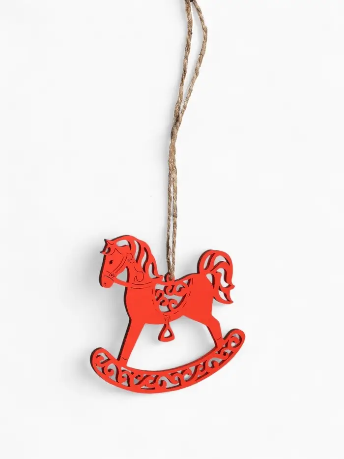 Ёлочное украшение "Лошадка" резная 9х8 см, Красный