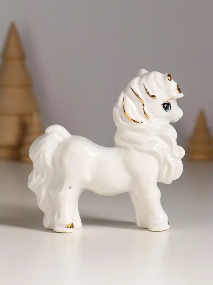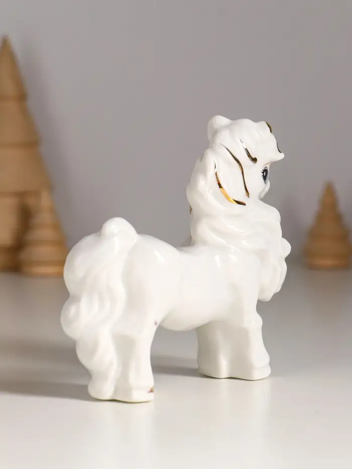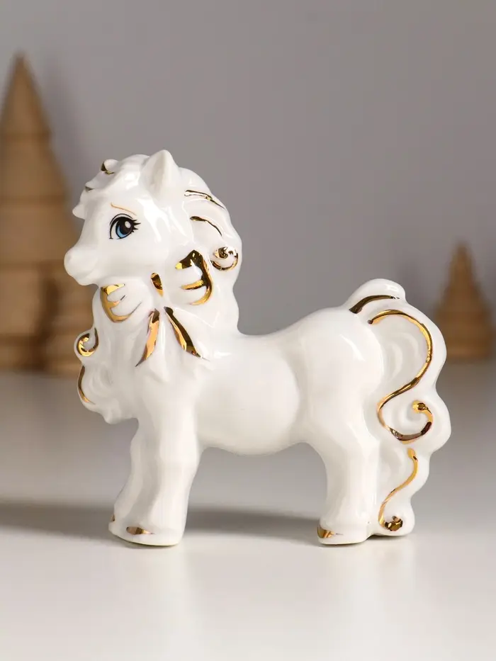 Сувенир керамика "Лошадка с бантом" белый с золотом 9,5х3х9,5 см