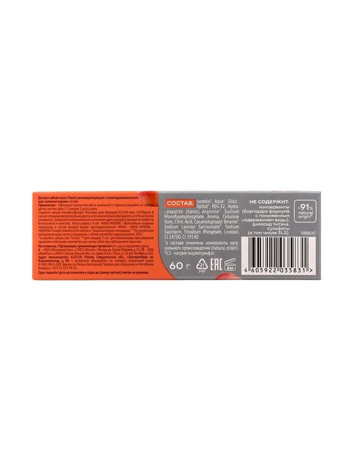 Зубная паста детская Реминерализирующая с наногидроксиапатитом нежный персик , от 6-12 лет, 60 гр 10