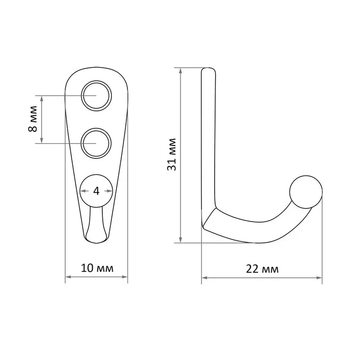 Крючок мебельный ТУНДРА TKO009, однорожковый, медь