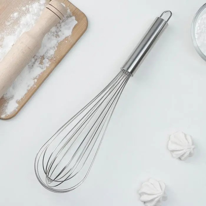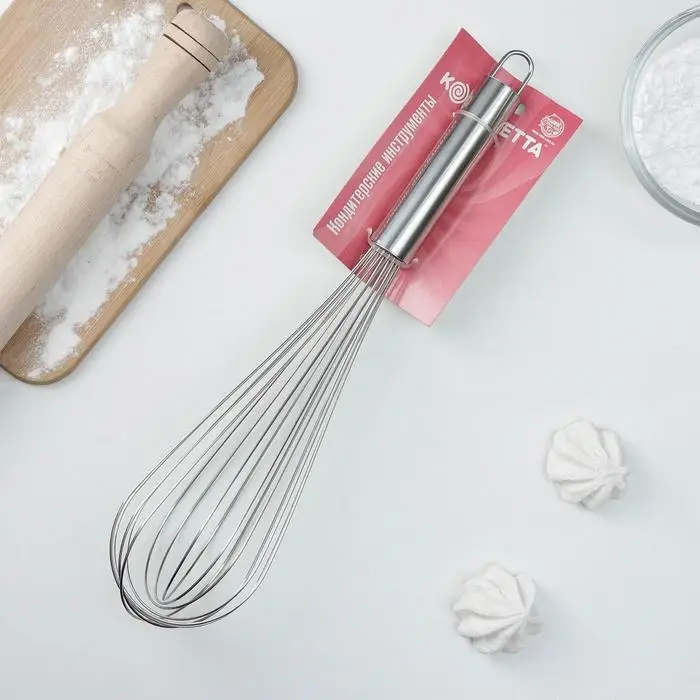 - Венчик поможет быстро взбить крем из белков и жирных сливок для украшения кондитерских изделий, а также перемешать ингредиенты для приготовления пышных оладий.