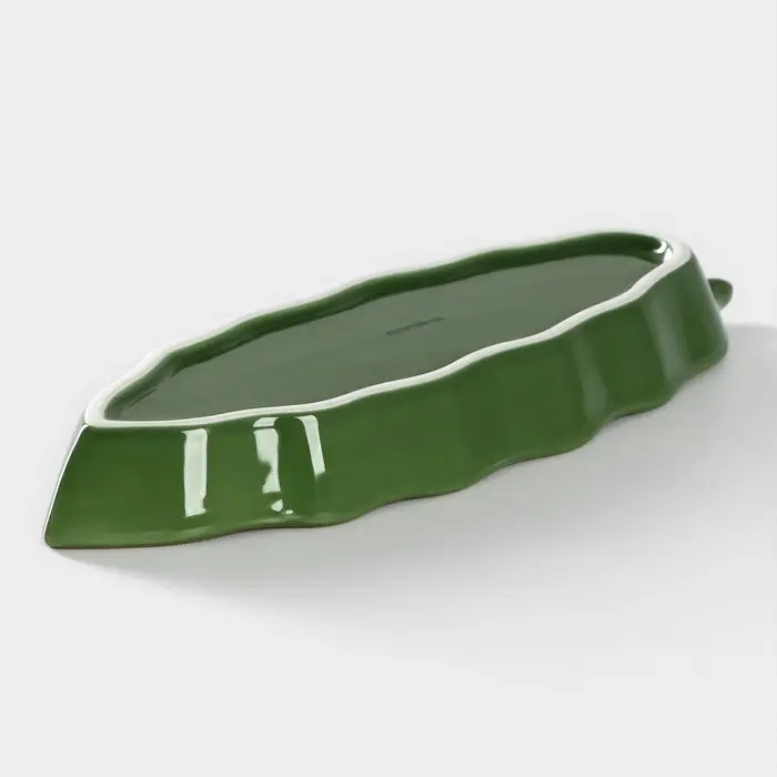 Блюдо сервировочное Доляна «Лист», 25×9×2,8 см, цвет зелёный