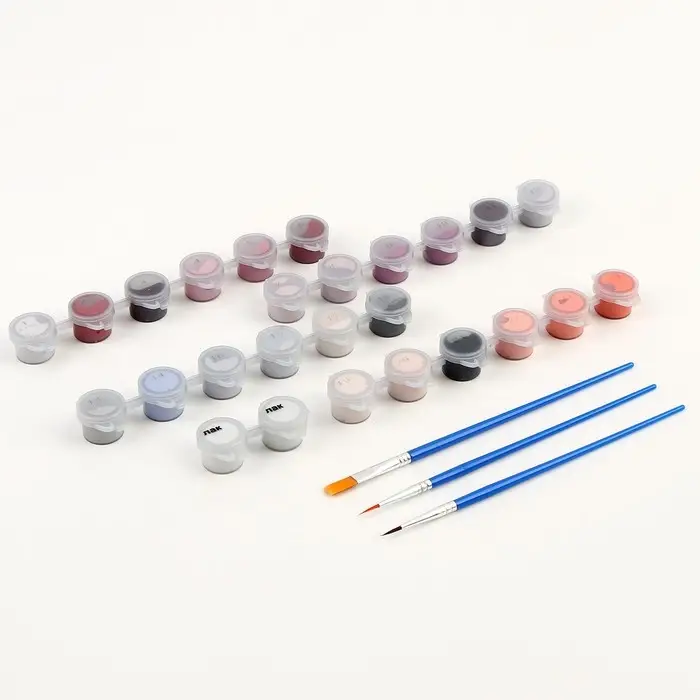- В набор входят все необходимые оттенки красок. Баночки пронумерованы.