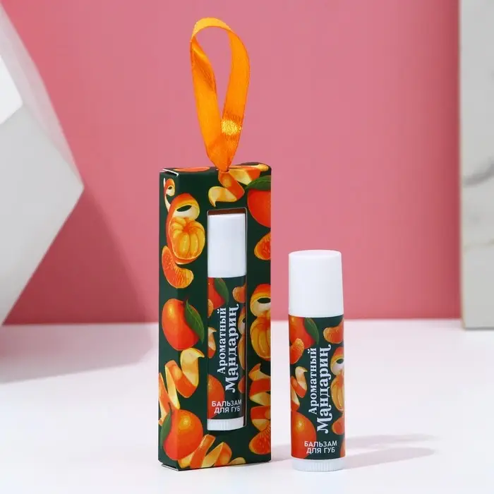 Бальзам для губ ЧИСТОЕ СЧАСТЬЕ в коробке, 10 г, аромат мандарина, Новый Год