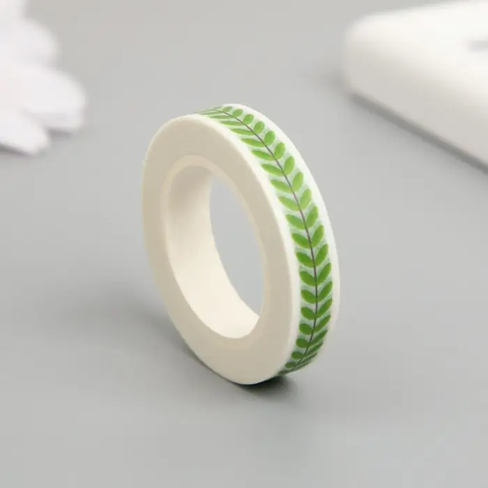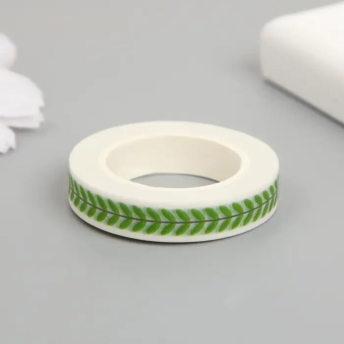 Клейкая лента бумага "Зелёные листики" ширина 0,8 см намотка 10 м 4,1х4,1х0,8 см