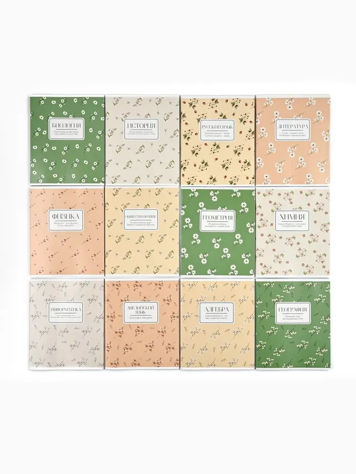 Тетради предметные, 48 л., набор из 12 шт., блок №1, Flowers