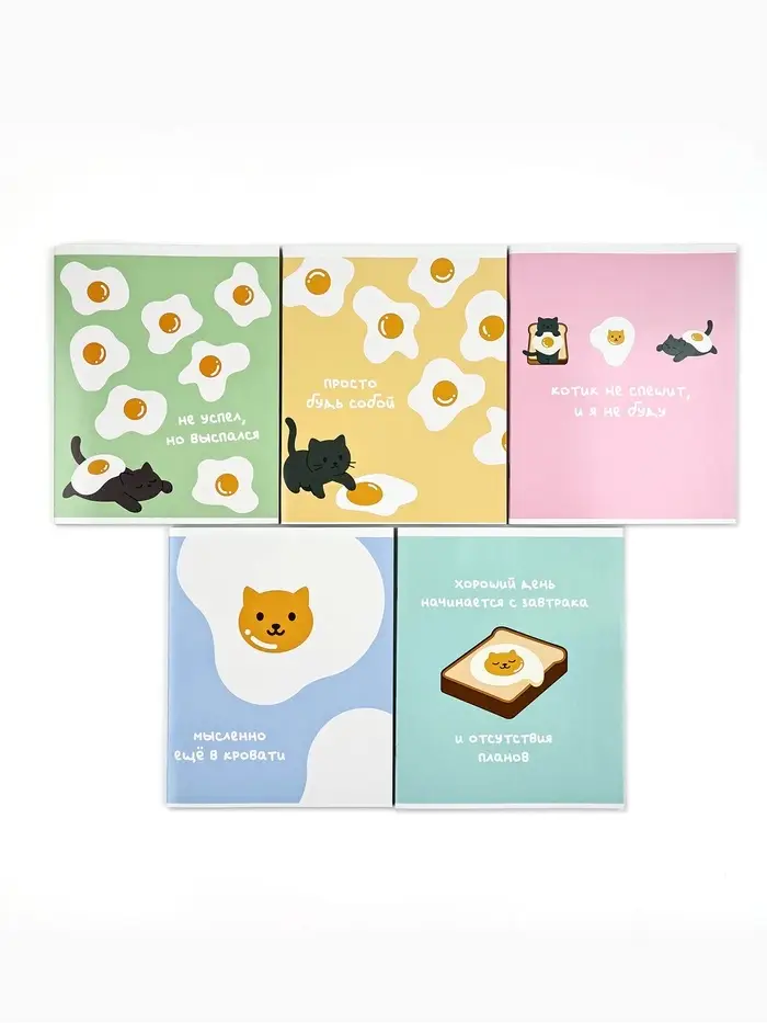 Тетрадь в клетку, 48 л., А5, на скрепке, блок №2 «Яичница» МИКС