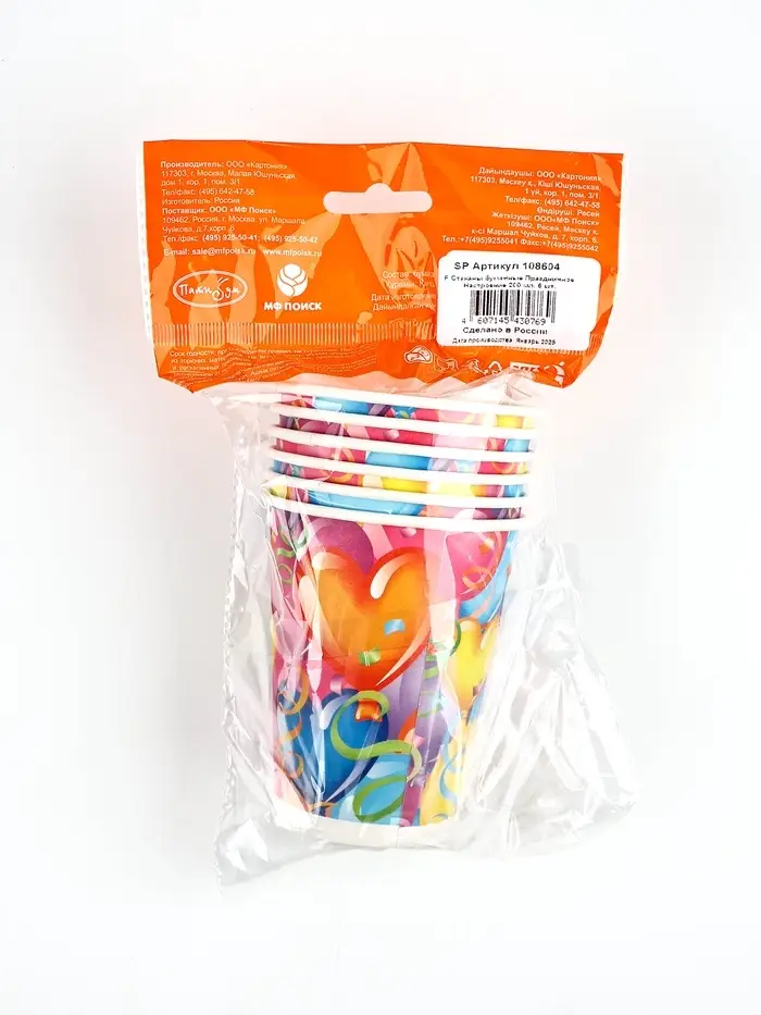Стаканы бумажные Праздничное настроение 200мл 6шт