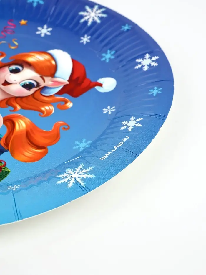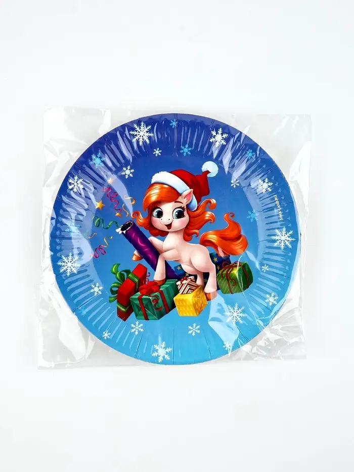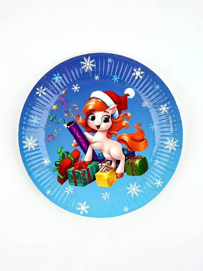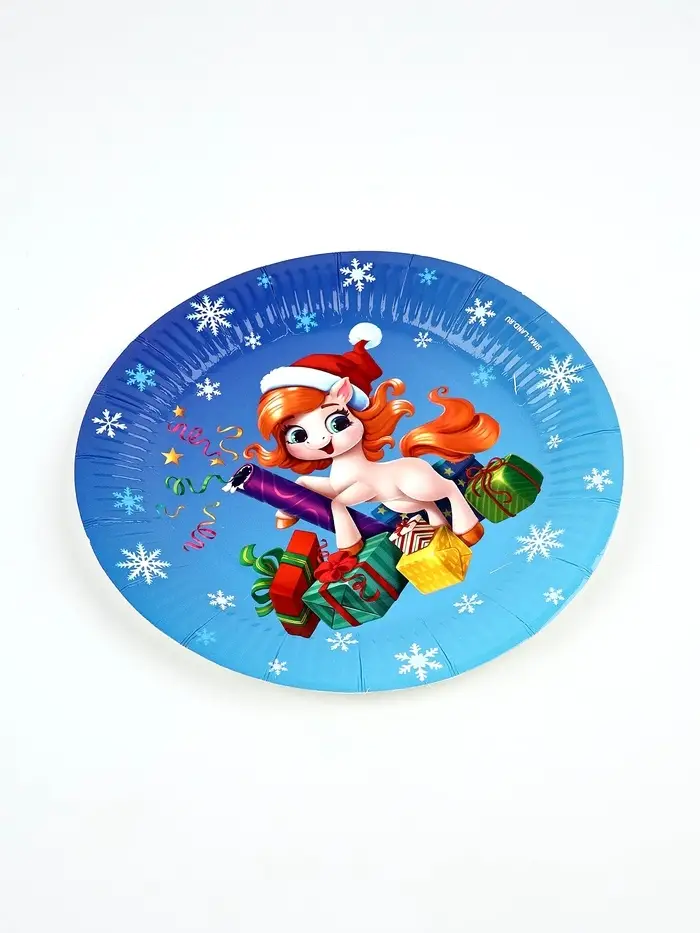 Тарелка бумажная "Лошадка в шапке" , голубая 18 см