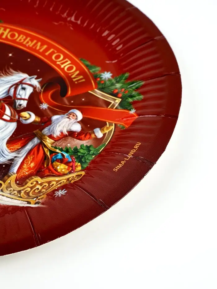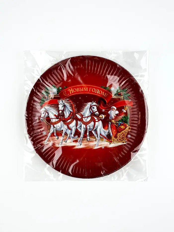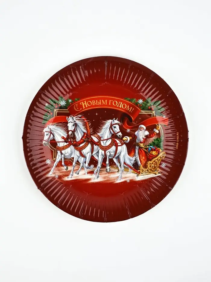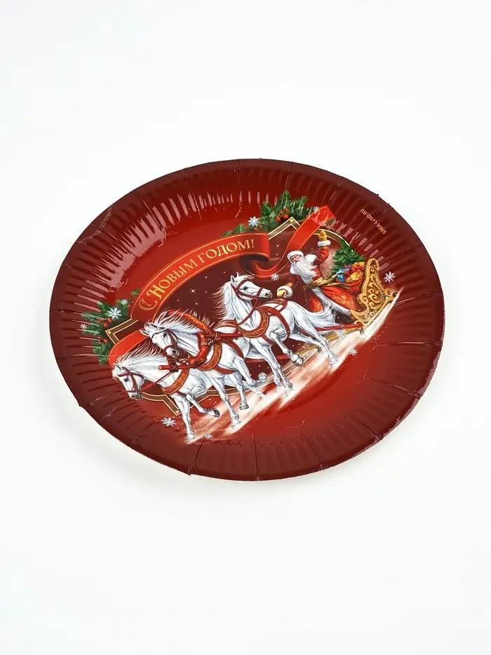 Тарелка бумажная "Три лошадки" , красная 18 см