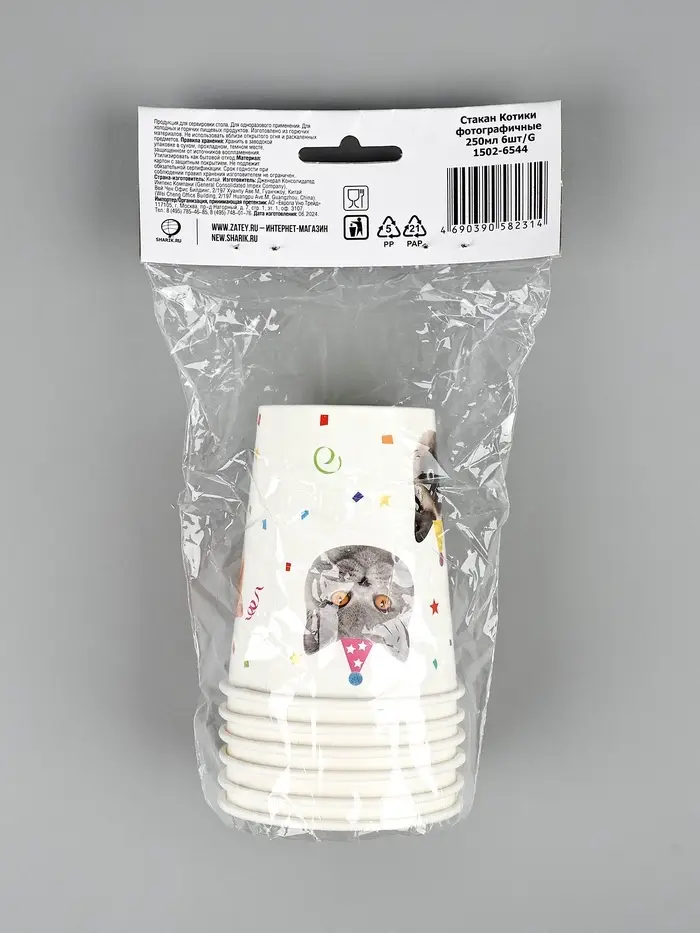 Стакан Котики фотографичные 250мл 6шт/G