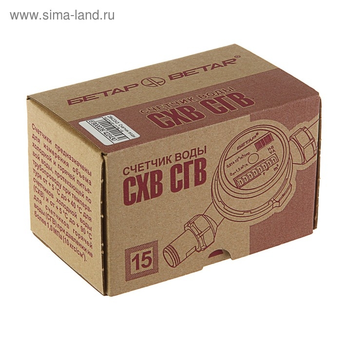 Счетчик воды "БЕТАР" СГВ-15, универсальный, 1/2", с комплектом присоединения