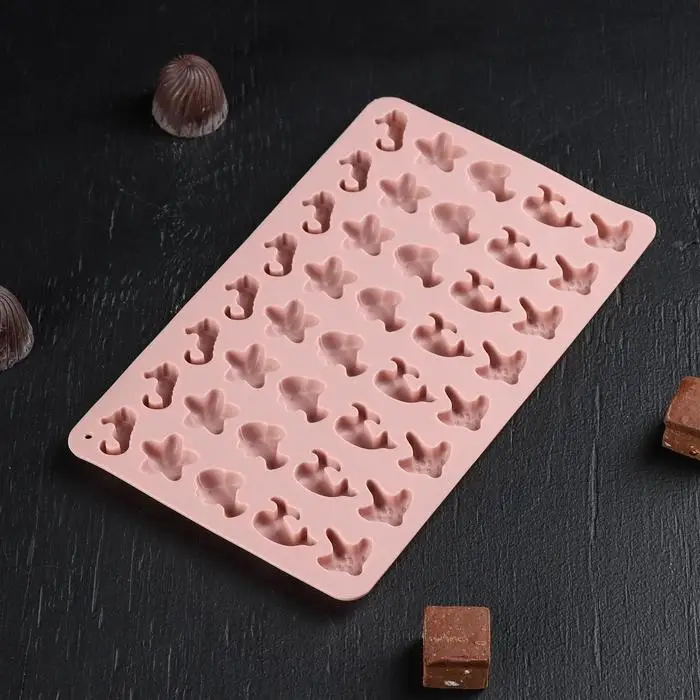Форма для мармелада Доляна «Морские секреты», силикон, 21,5×13×1 см, 40 ячеек, цвет МИКС