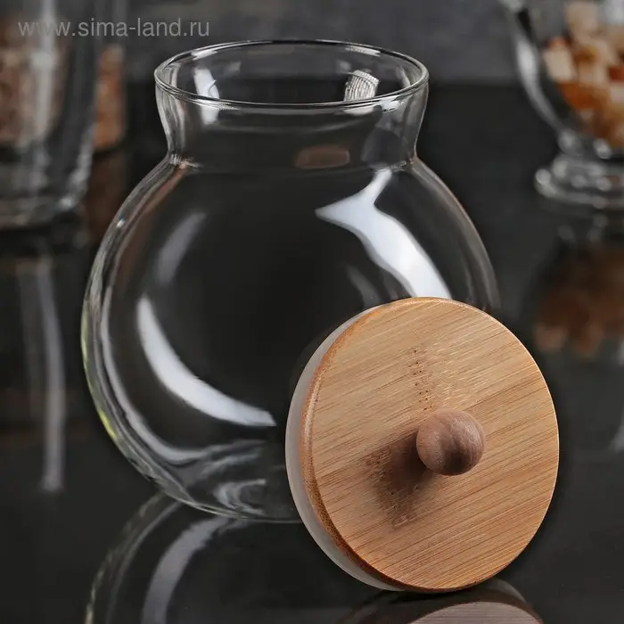 Банка стеклянная для сыпучих продуктов с бамбуковой крышкой «Бамбук», 950 мл, 13×15 см