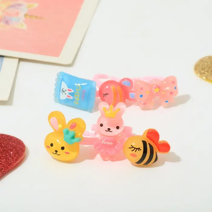 Кольцо детское «Выбражулька» ассорти для девочек, форма МИКС, цвет МИКС, безразмерное