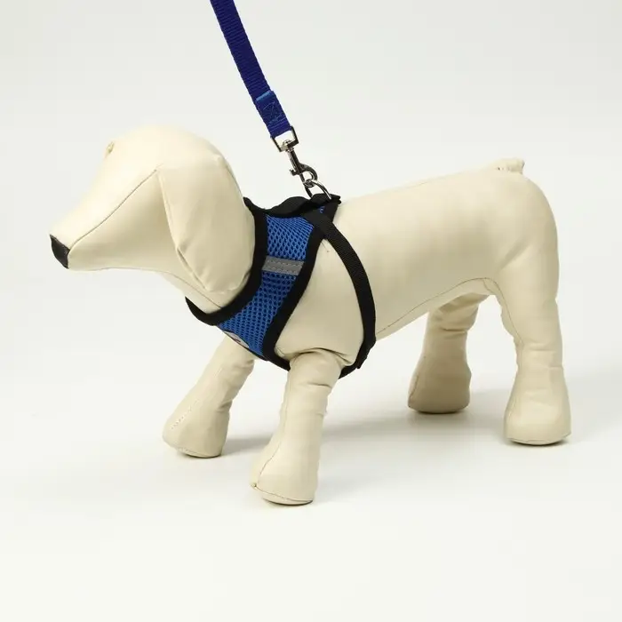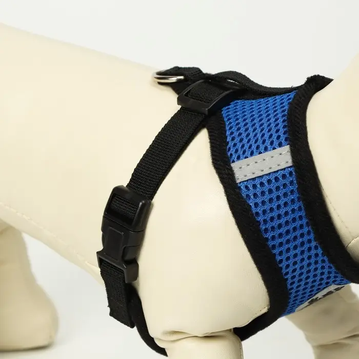 Комплект амуниции с мягкой шлейкой и светоотражающей нашивкой, M, ОШ 26, ОГ 36-44, синий