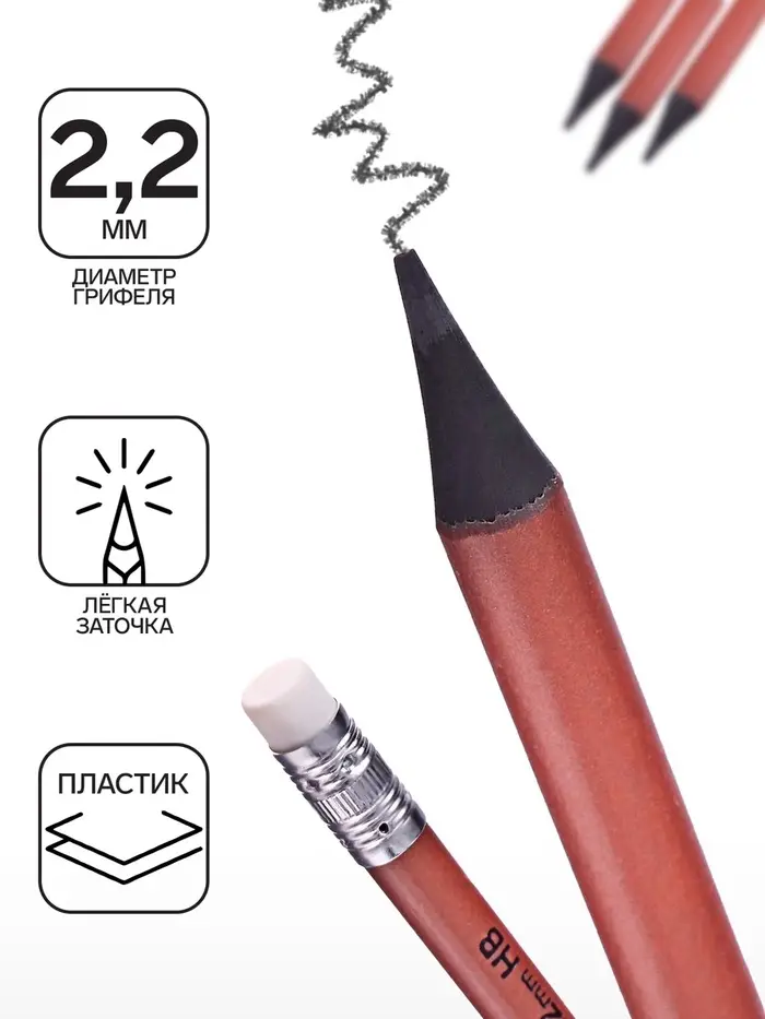 - Грифель диаметром 2.2 мм не царапает бумагу и не крошится при рисовании.